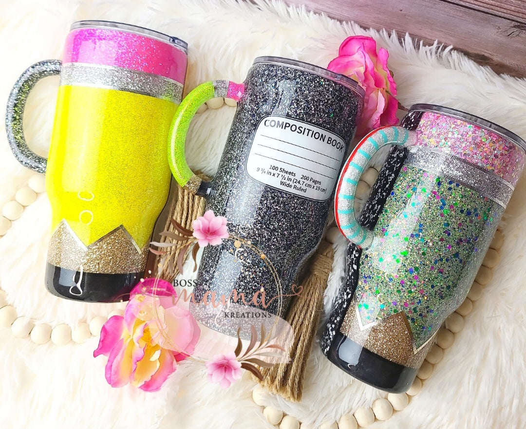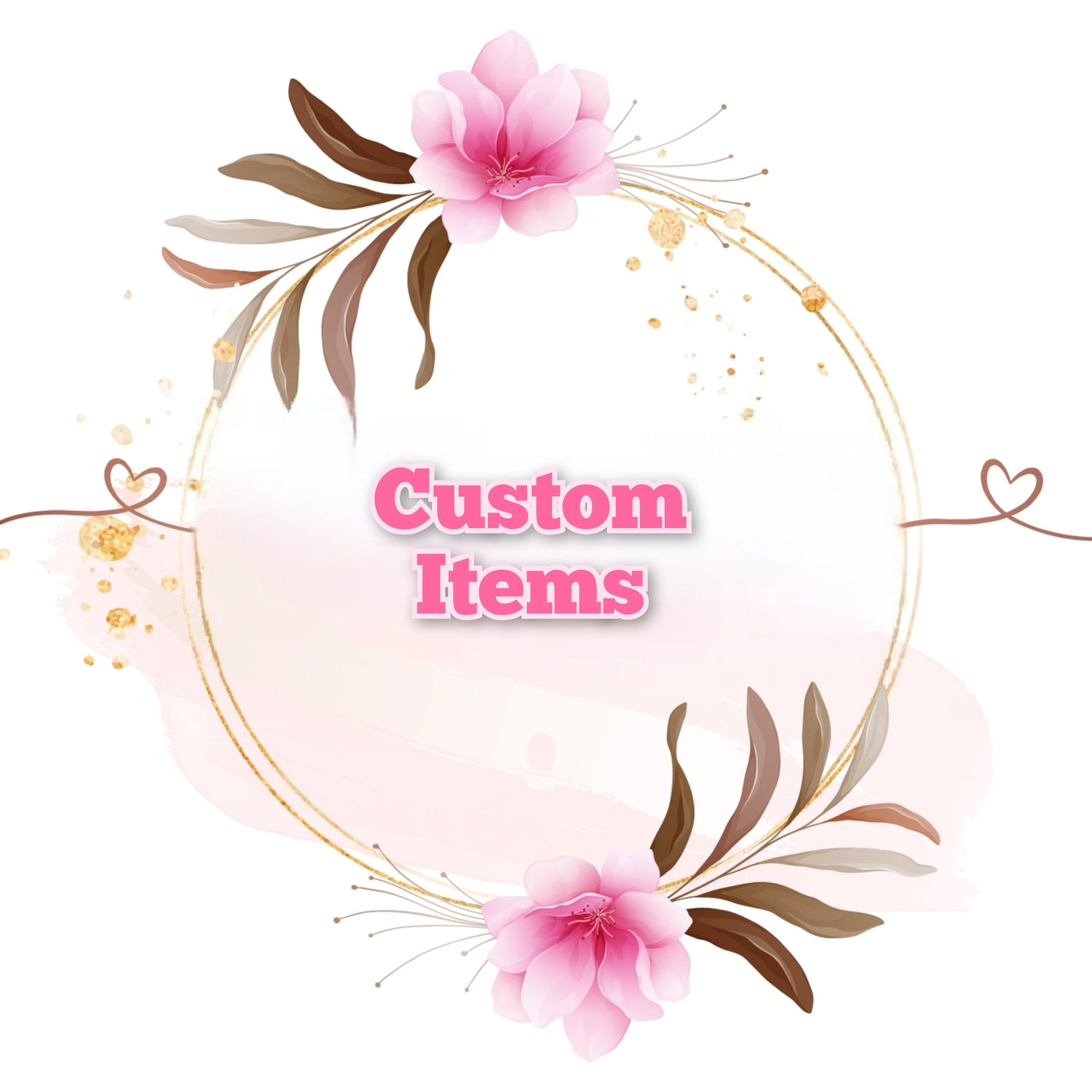 A custom tumbler is one we have most likely, not made. This requires more time from us due to research, designing, and figuring out glitter colors, gathering new images, creating decals, editing, among many other steps. Custom orders can also be your personal choice of colors, quotes/sayings, images etc., and it takes longer to complete and design all the tedious details to make these customs happen. We do reserve the right to refuse certain custom orders. Turn around time for custom orders may require more time depending on designs. If there's a specific item (not listed in the shop) that you want custom made, please message us with your request, and we will create a custom listing just for you.